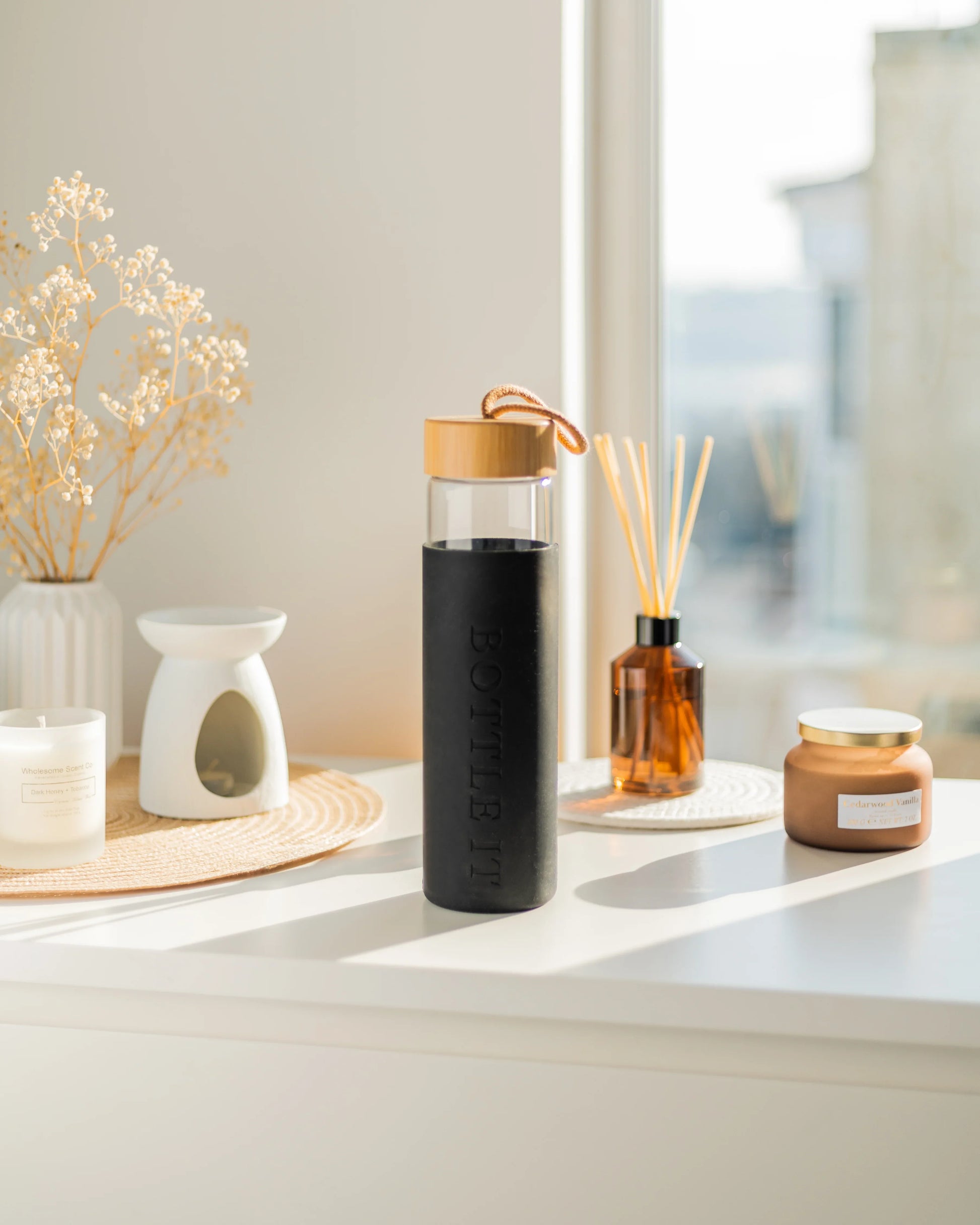Obsidian Glass Water Bottle | Sustainable Borosilicate 750ml | BOTTLE IT